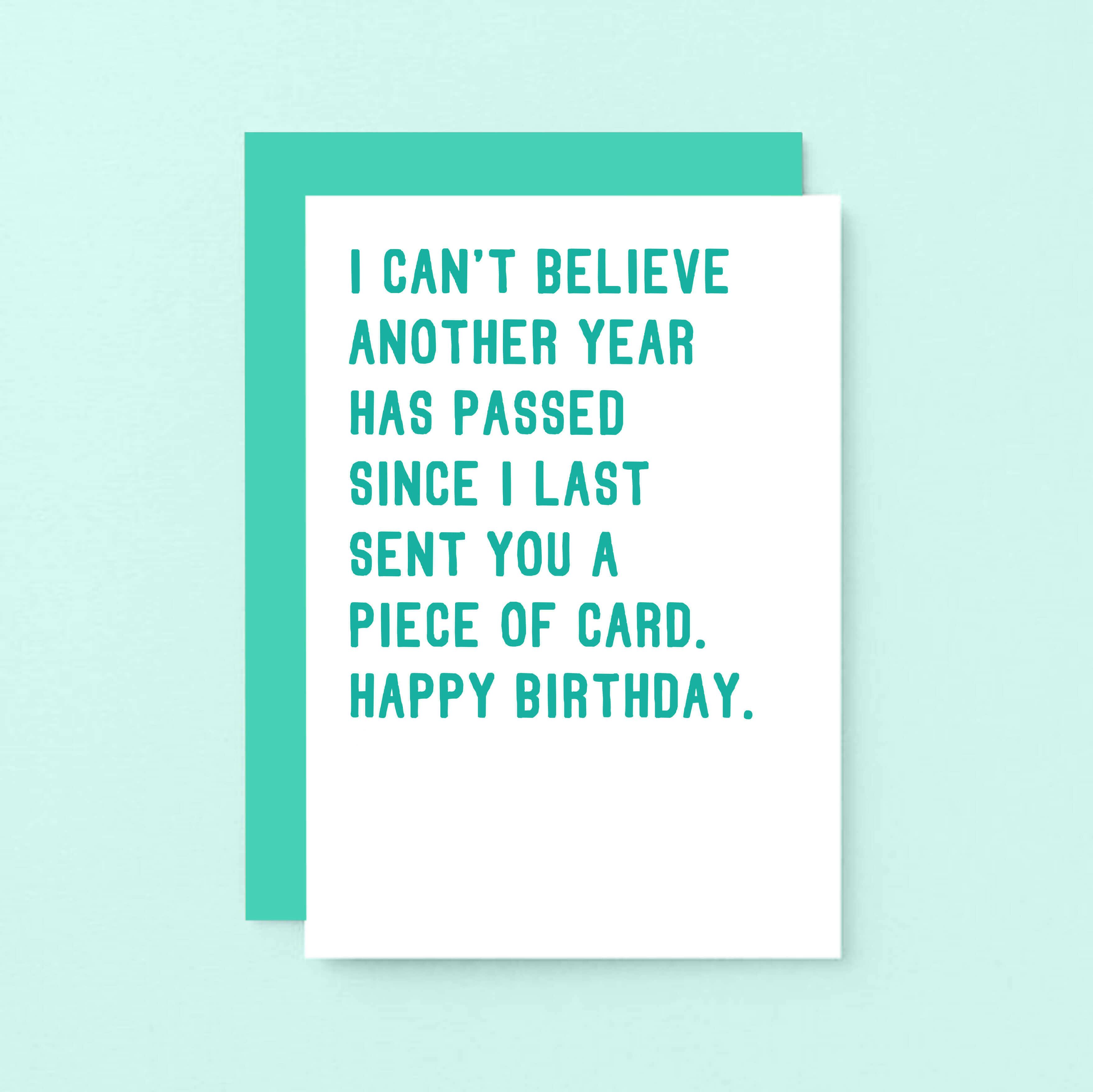 So yet another year has passed...and still all they get is yet another piece of card! Send a friend or family member happy birthday wishes with this funny greeting card designed by SixElevenCreations.