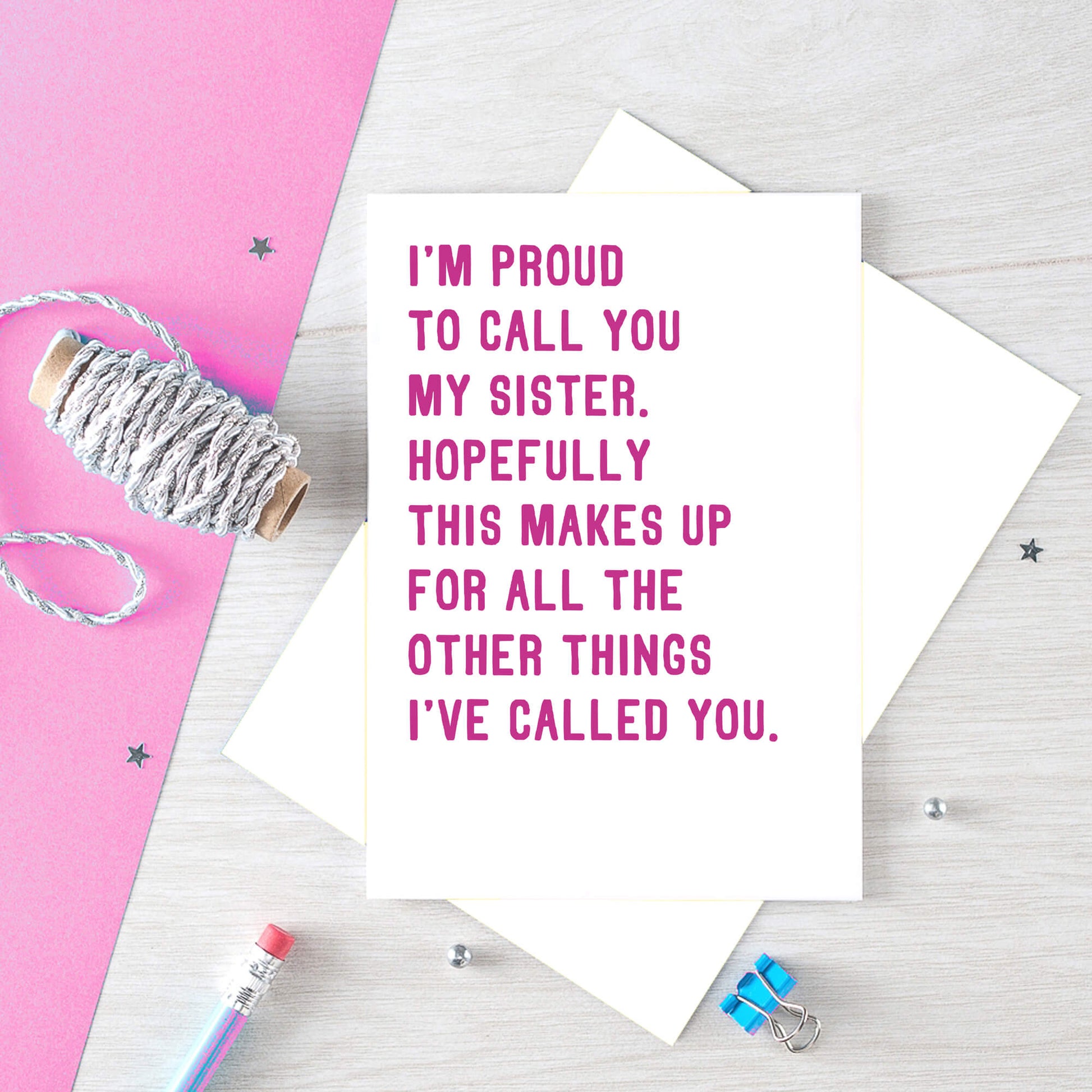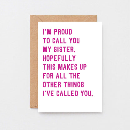Witty birthday card for the sister with a sense of humour! This card is great for her birthday, to congratulate her or just to let her know you're proud of her.