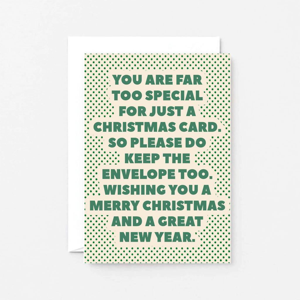 Send some Christmas humour to friends and family with this cheeky reminder of how special they are. Special enough that they get to keep the envelope too!